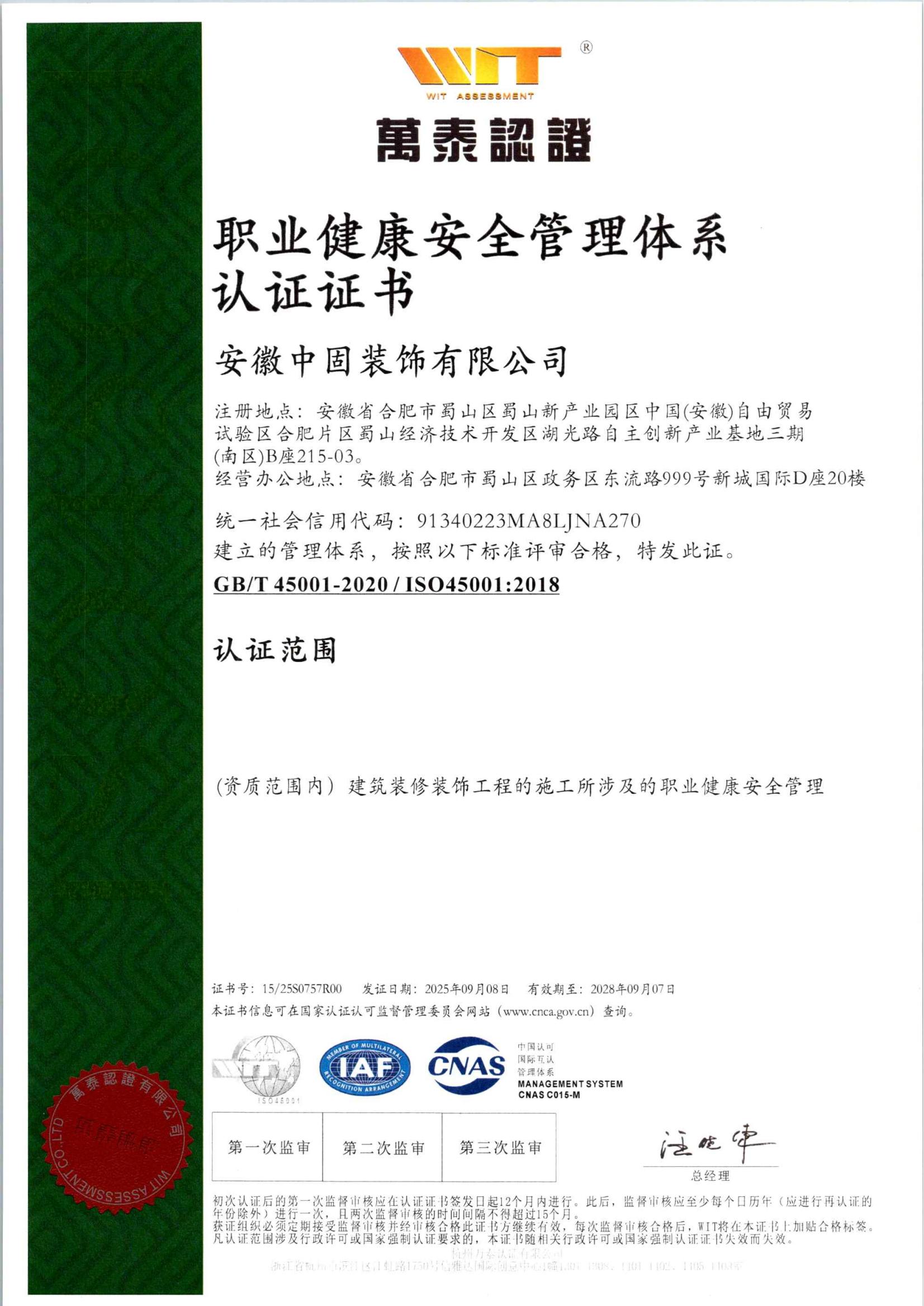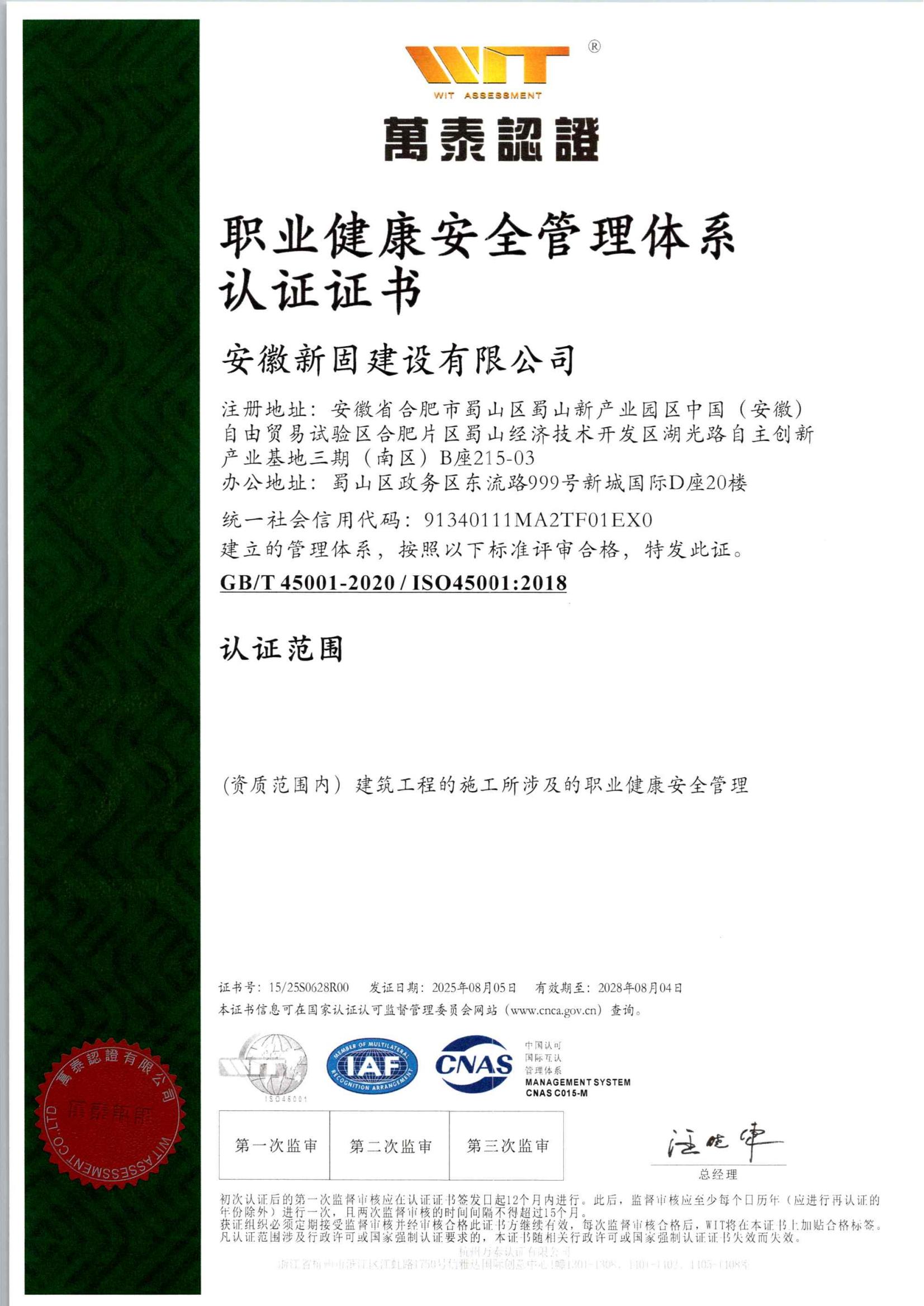 • 安徽新固获“职业健康…
