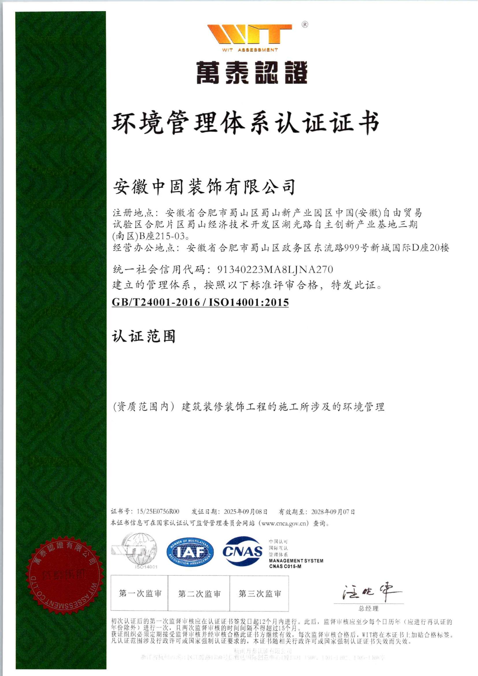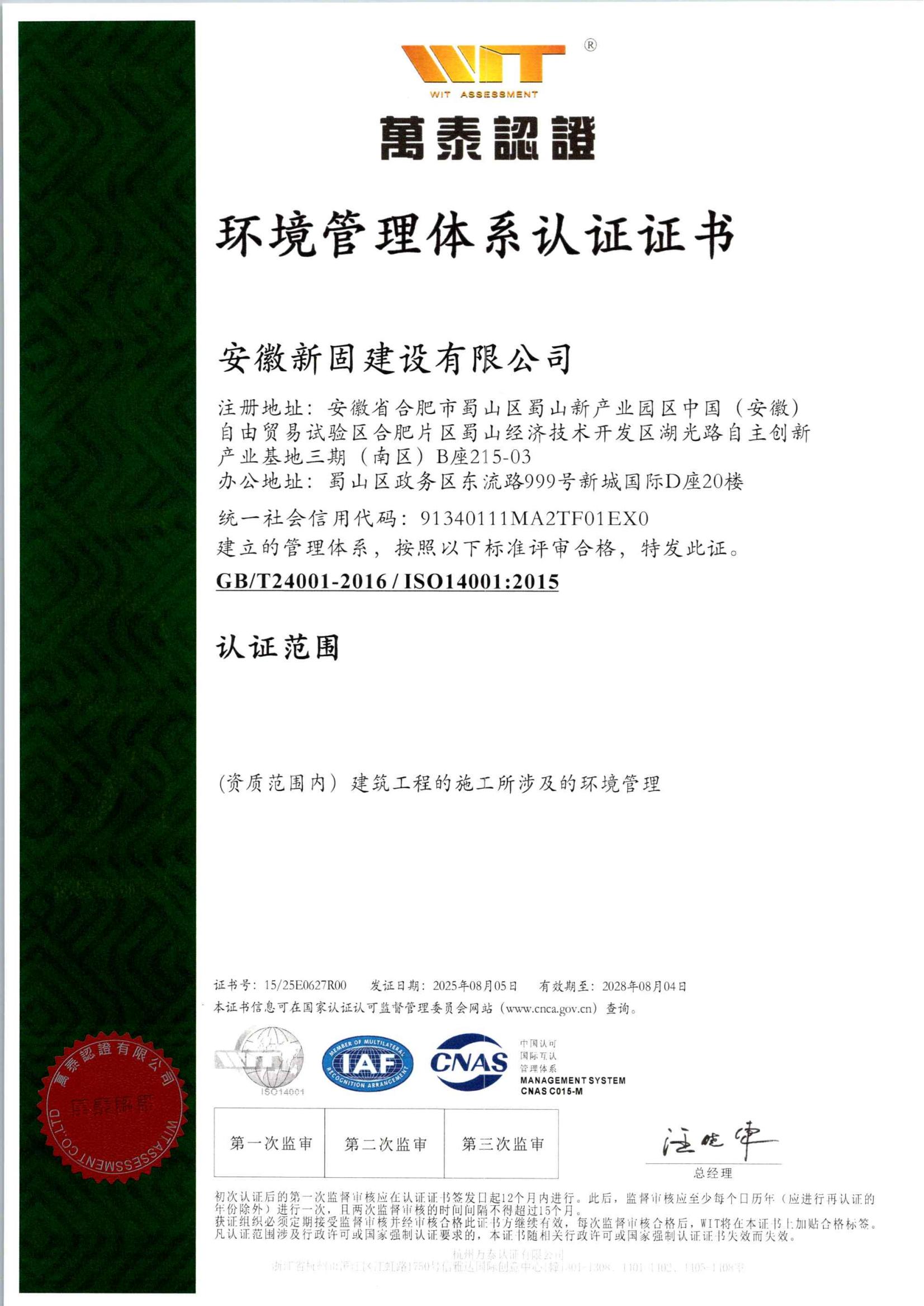• 安徽新固获“环境管理…