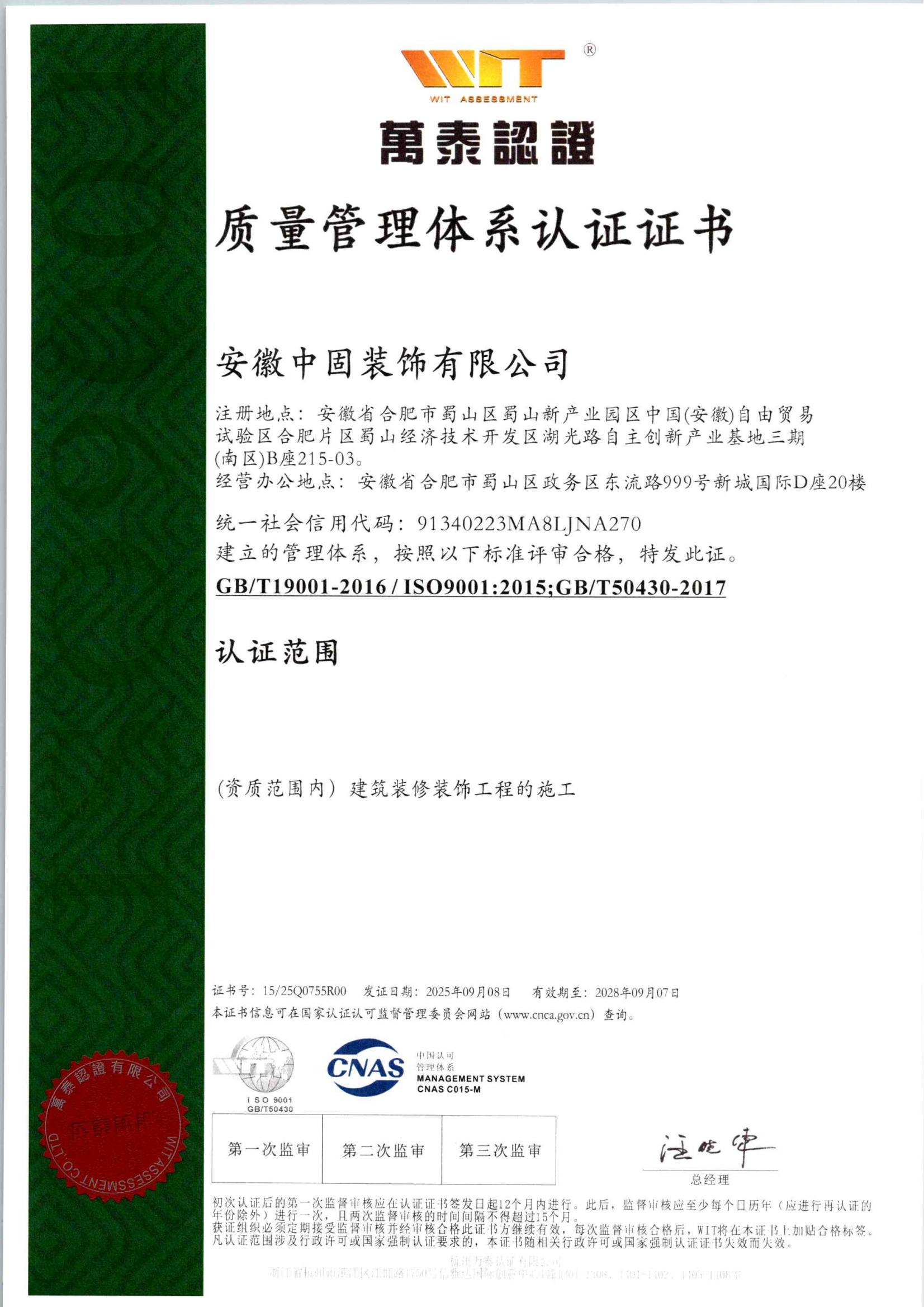 • 安徽新固获“质量管理…