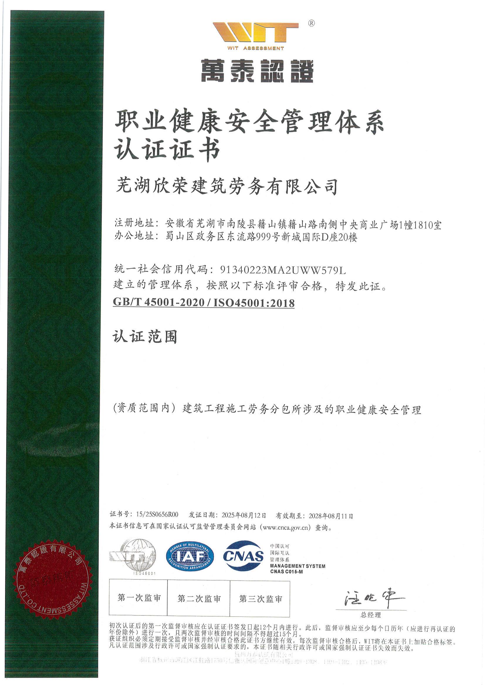 • 欣荣劳务获“职业健康…