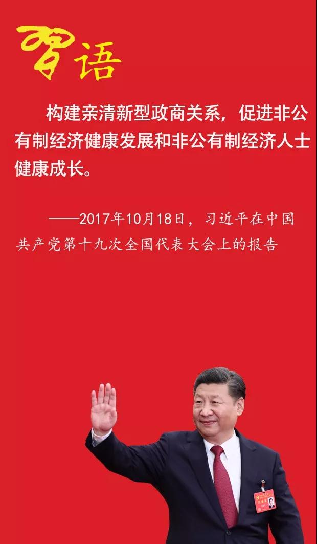 新型政商关系,概括起来说就是“亲”、“清”两个字。对领导干部而言,所谓“亲”,就是要坦荡真诚同民营企业接触交往,特别是在民营企业遇到困难和问题情况下更要积极作为、靠前服务,对非公有制经济人士多关注、多谈心、多引导,帮助解决实际困难。所谓“清”,就是同民营企业家的关系要清白、纯洁,不能有贪心私心,不能以权谋私,不能搞权钱交易。对民营企业家而言,所谓“亲”,就是积极主动同各级党委和政府及部门多沟通多交流,讲真话,说实情,建诤言,满腔热情支持地方发展。所谓“清”,就是要洁身自好、走正道,做到遵纪守法办企业、光明正大搞经营。